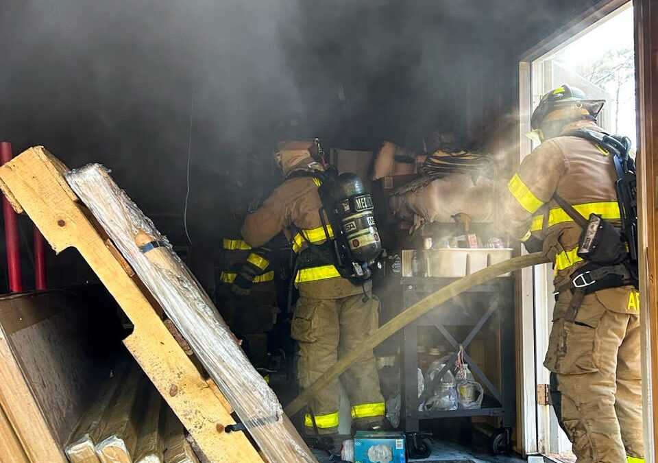 A WCFR volunteer firefighter arrived within minutes, quickly performed a size up, and pulled a hose line to begin initial fire attack. Crews from DeFuniak Springs Fire Department, WCFR Medic 7 crews, and volunteers with Liberty Volunteer Fire District arrived on scene moments later. DeFuniak firefighters performed a forced entry on the shed door, clearing the path for WCFR personnel who entered and brought the fire under control.